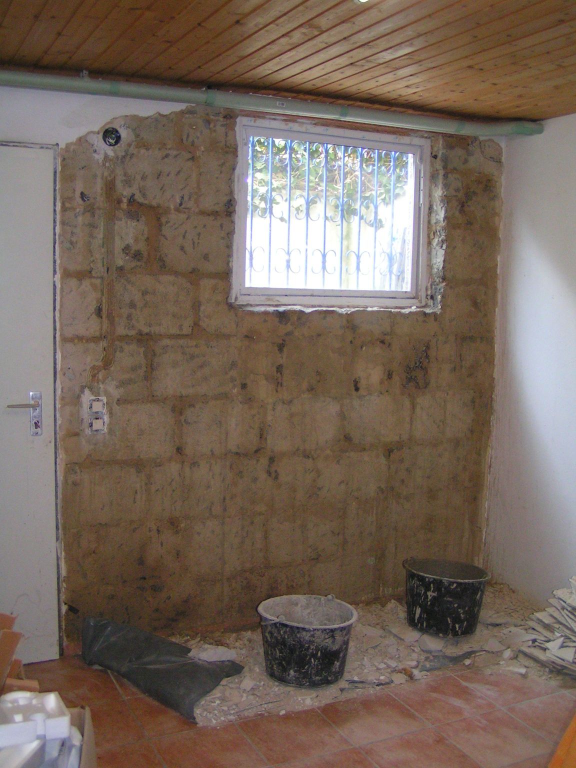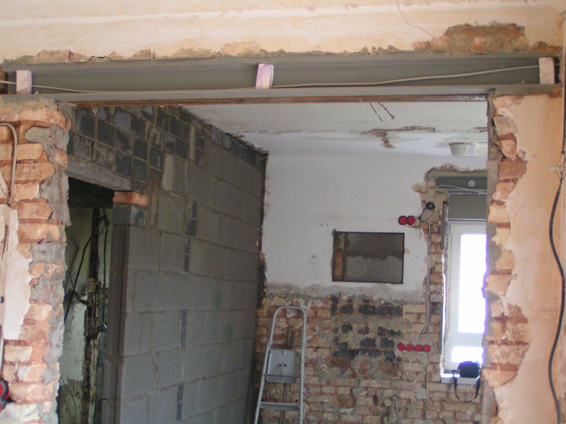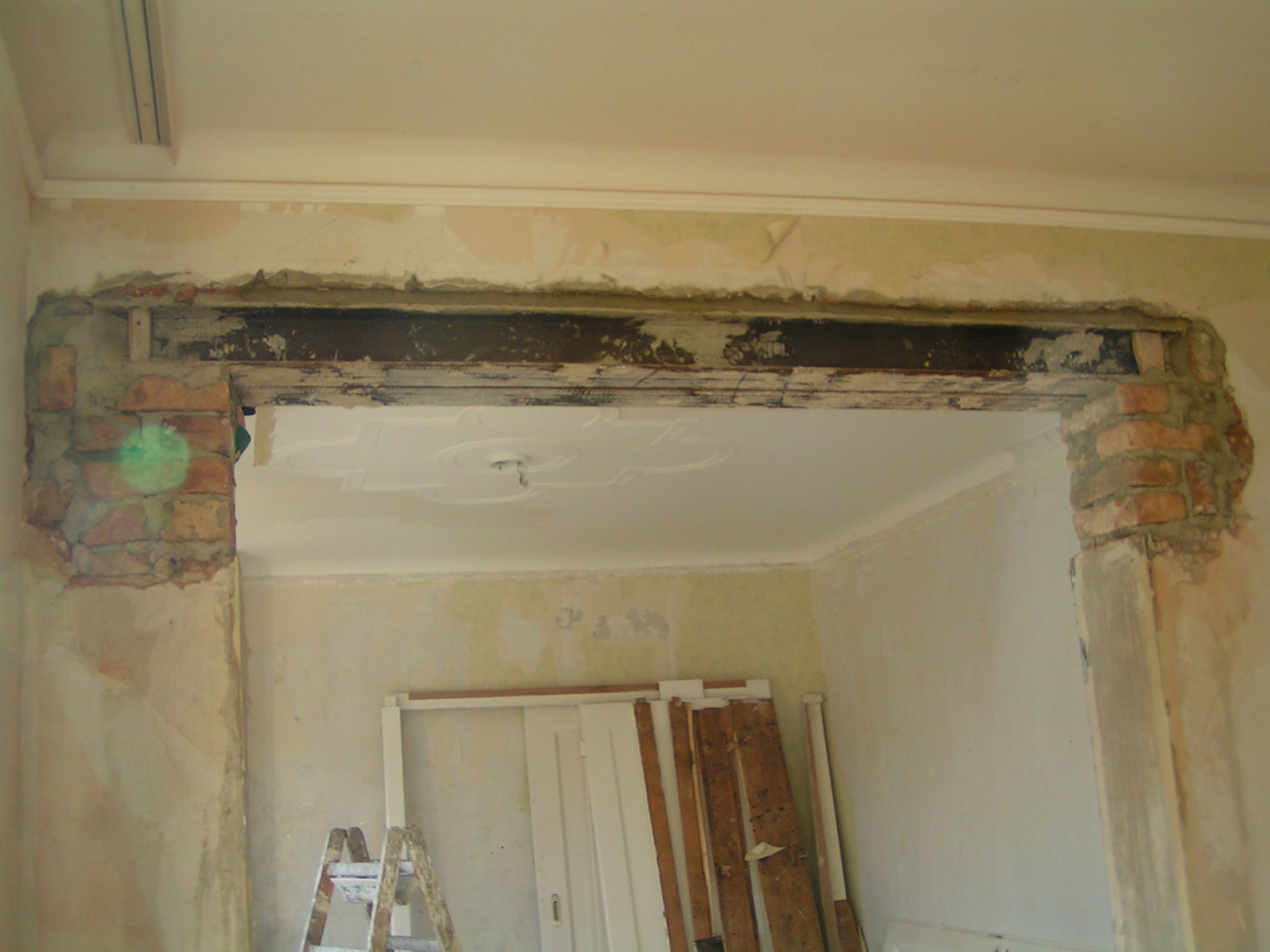 Entfernung einer Tür, Eingringung von Stahlträger, Vergrößerung des Druchgangs mit Beiputzarbeiten und Anstrich (vorher)