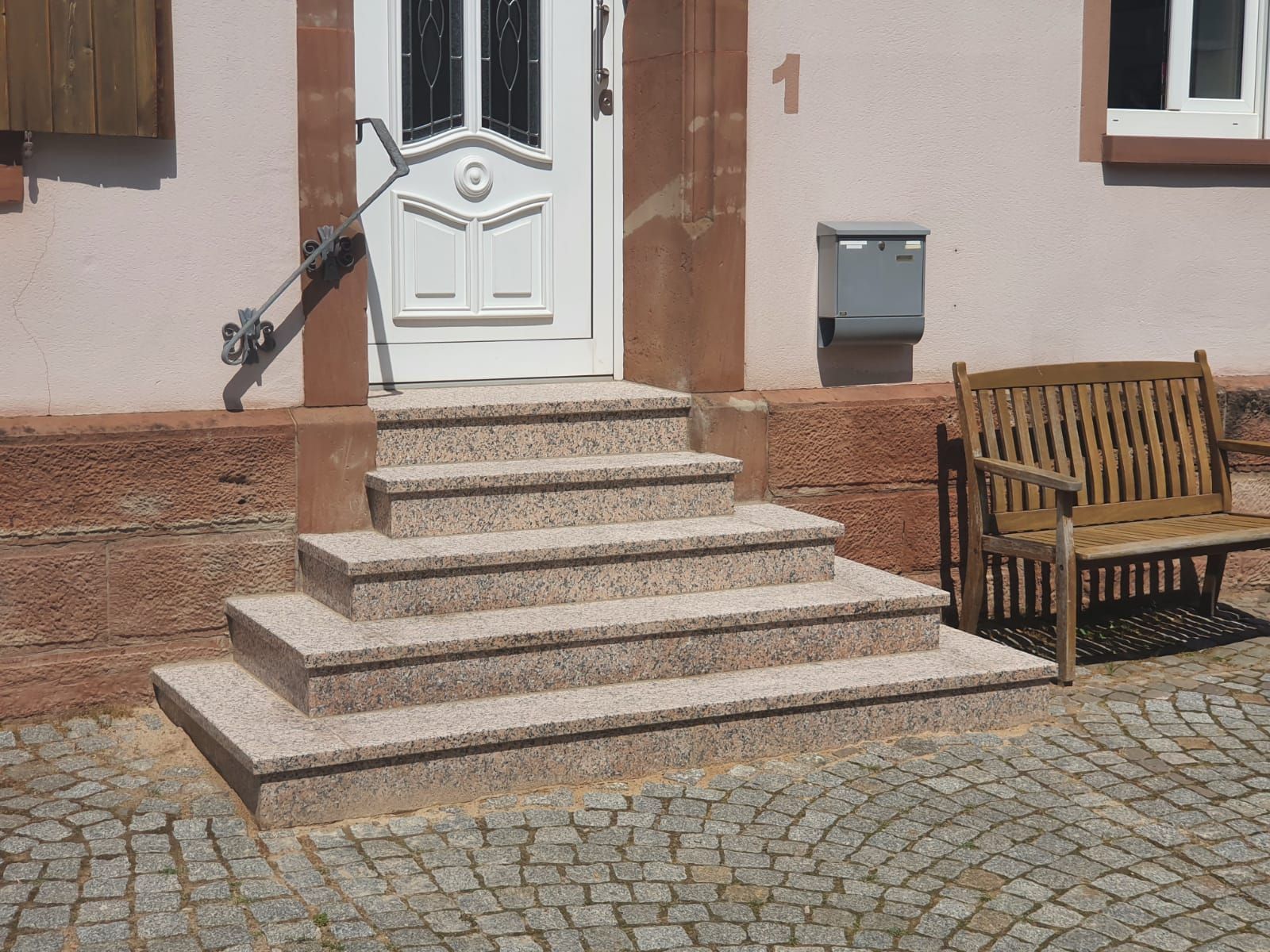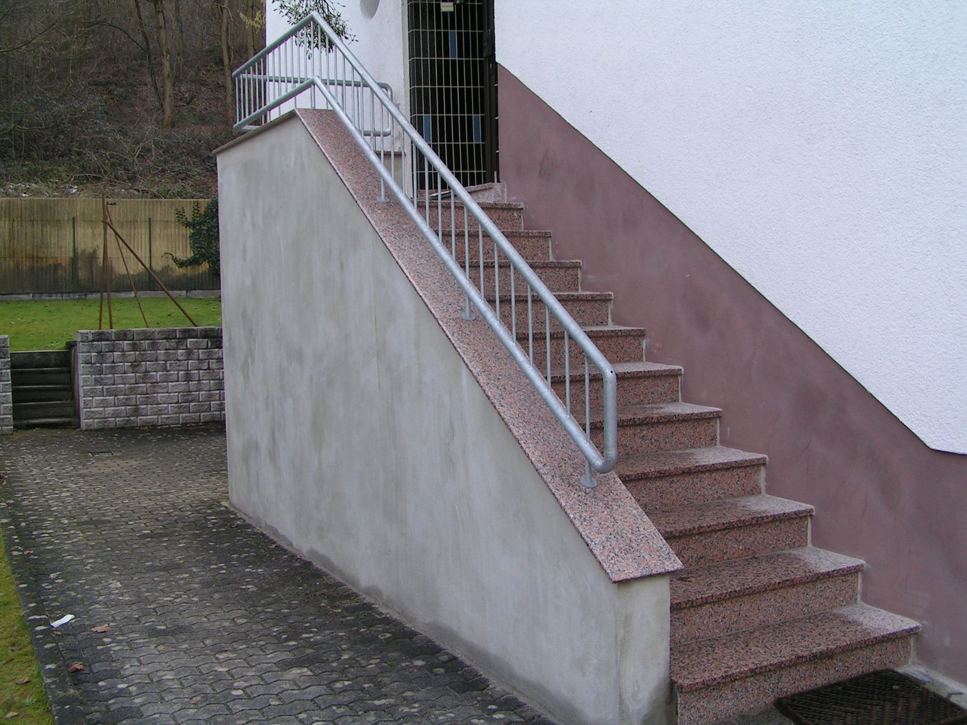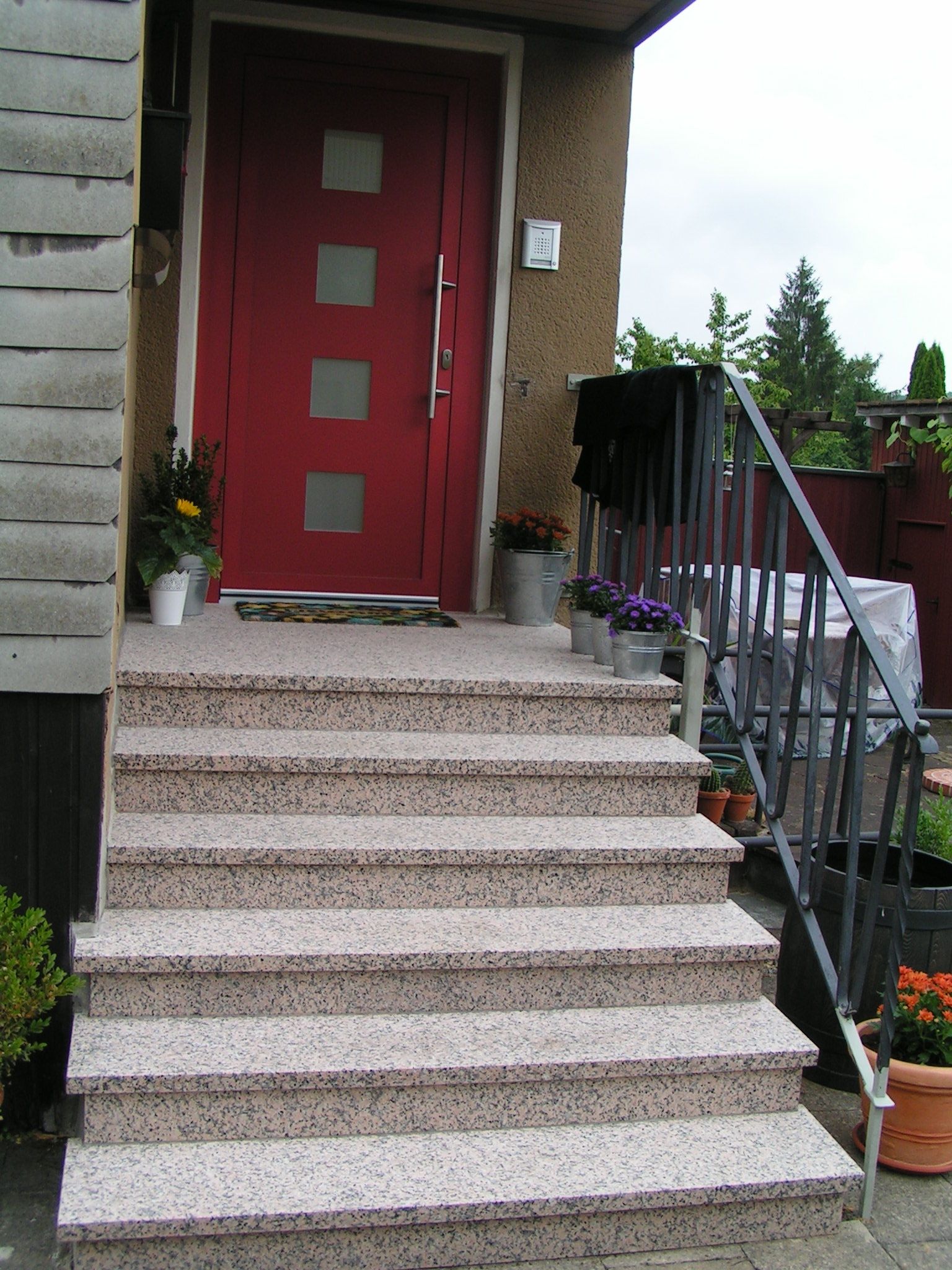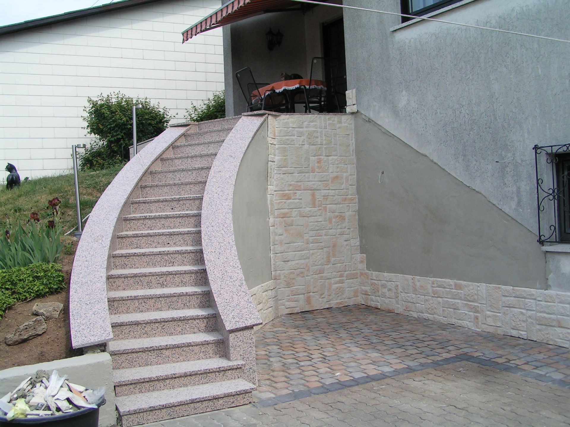 Neue Granittreppe mit Abdeckplatten und Geländer sowie Verputzarbeiten
