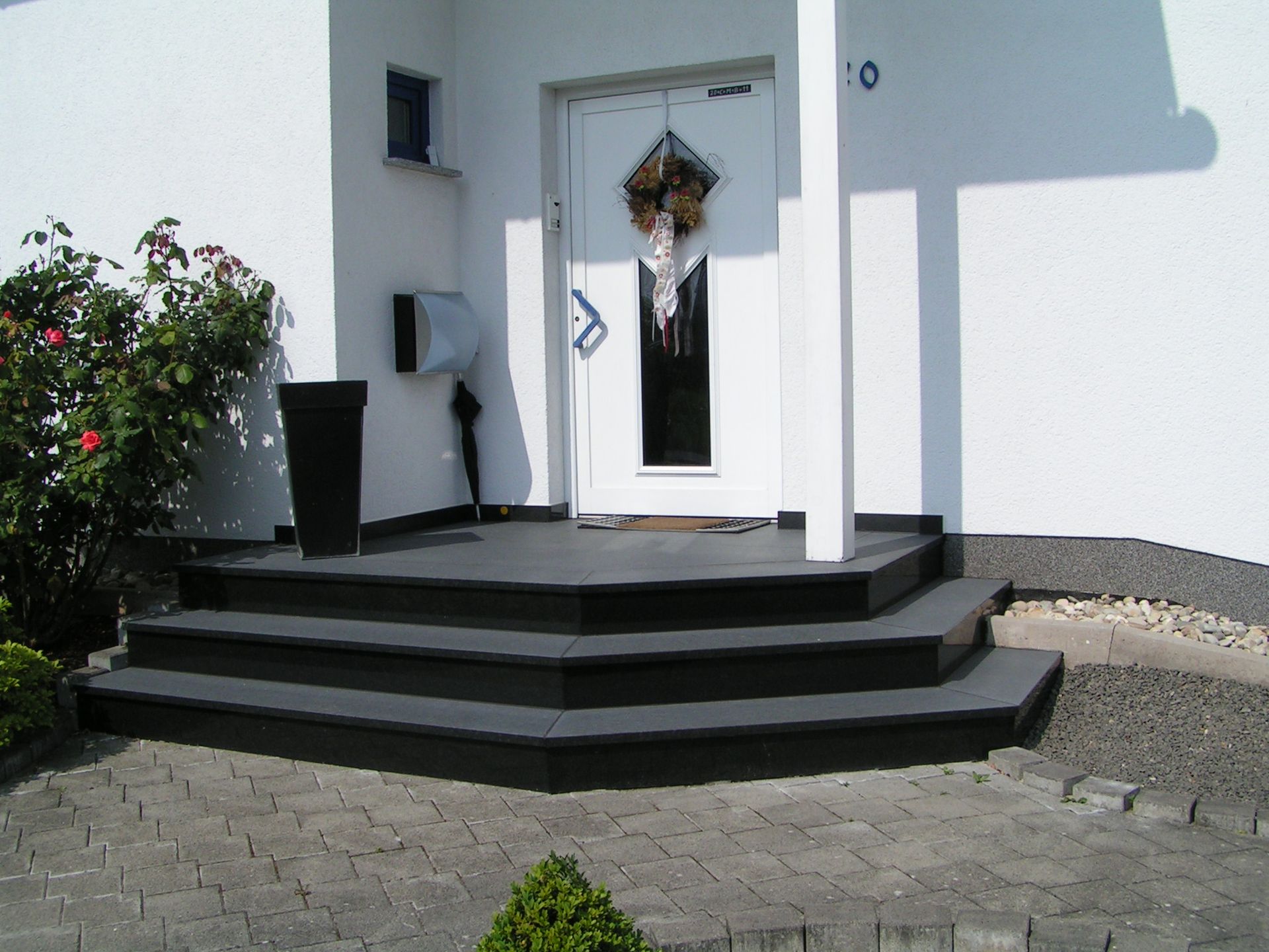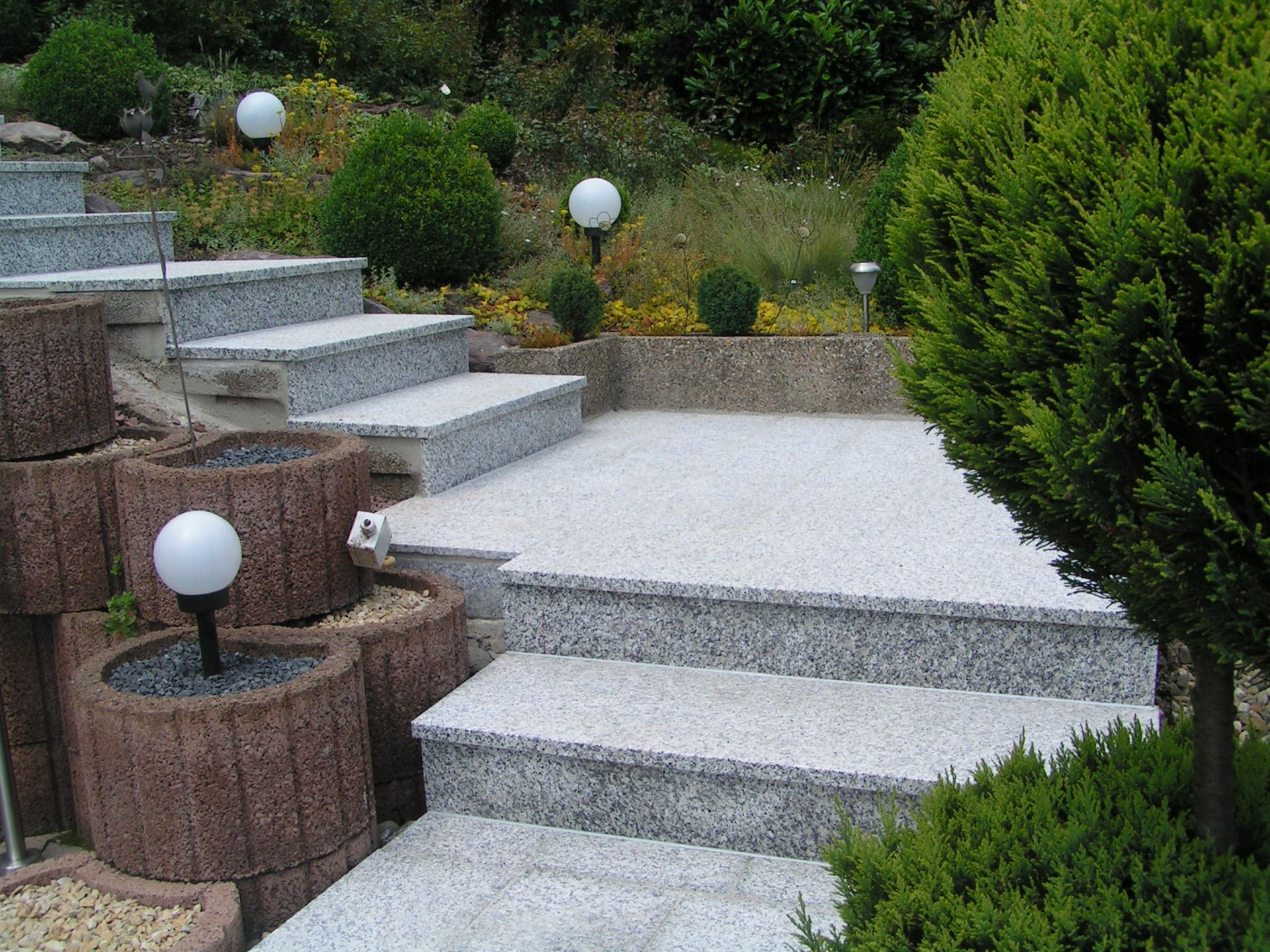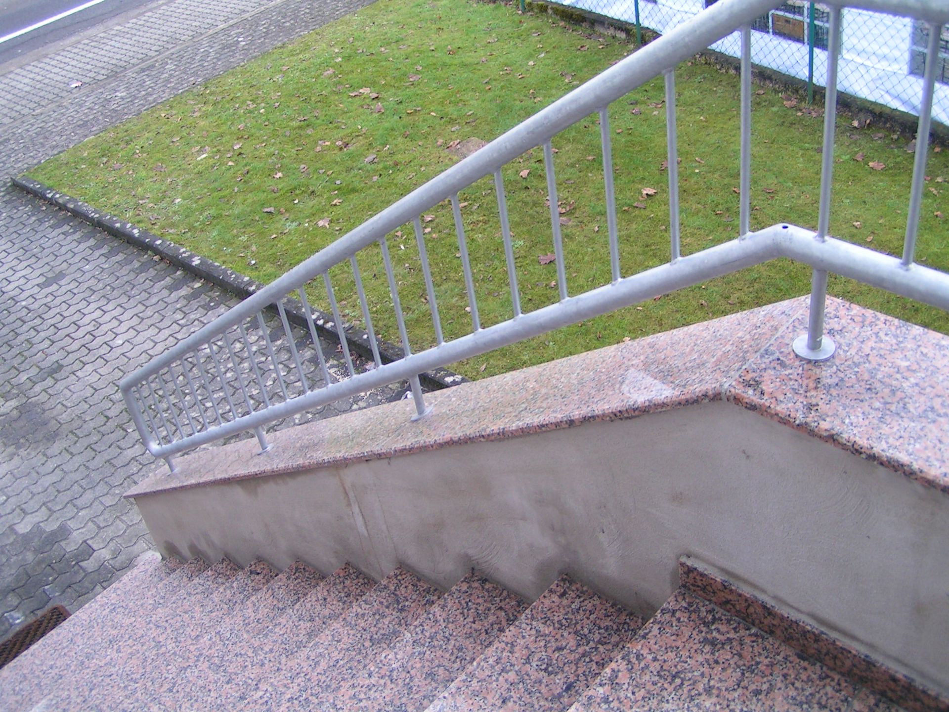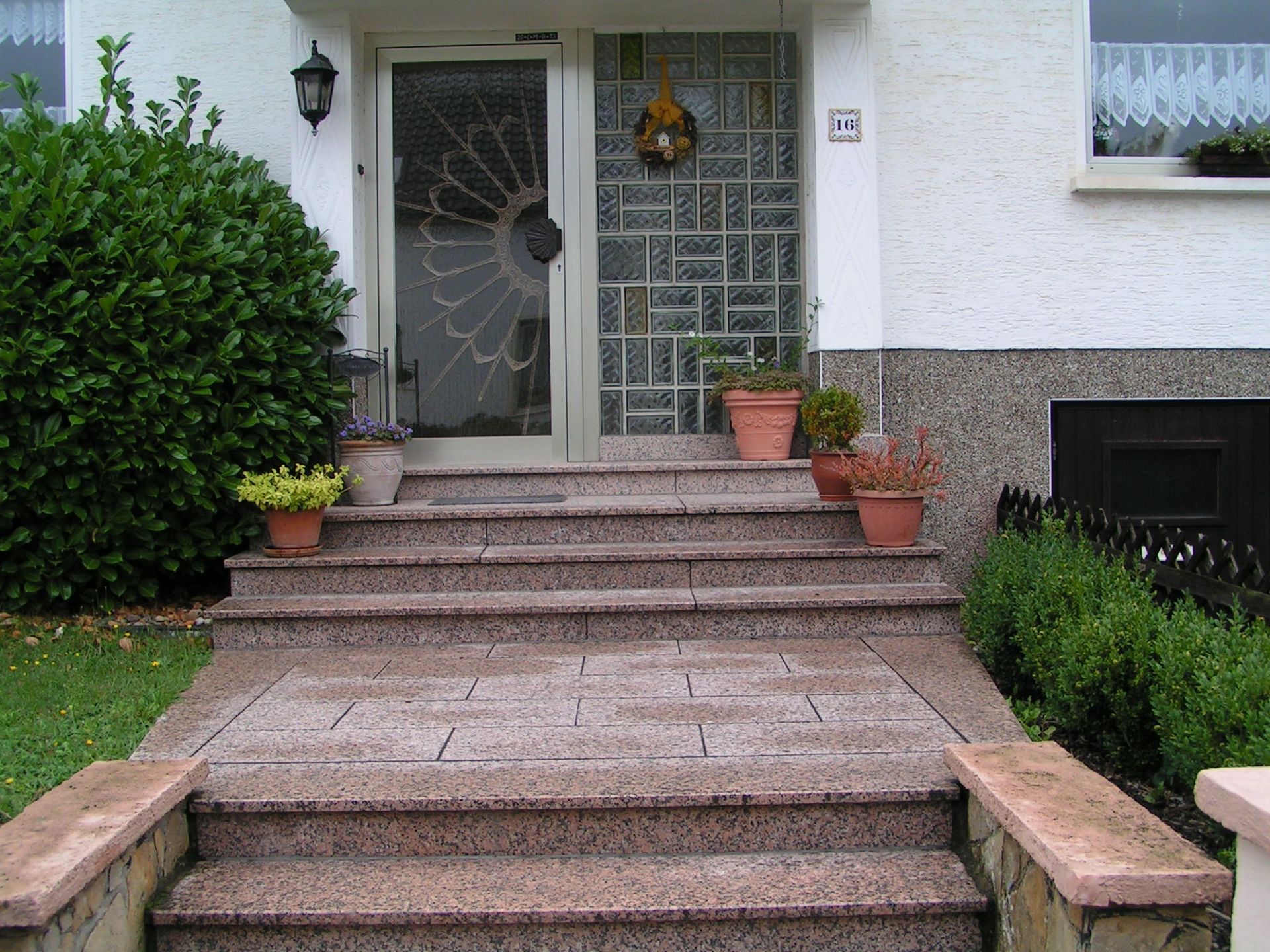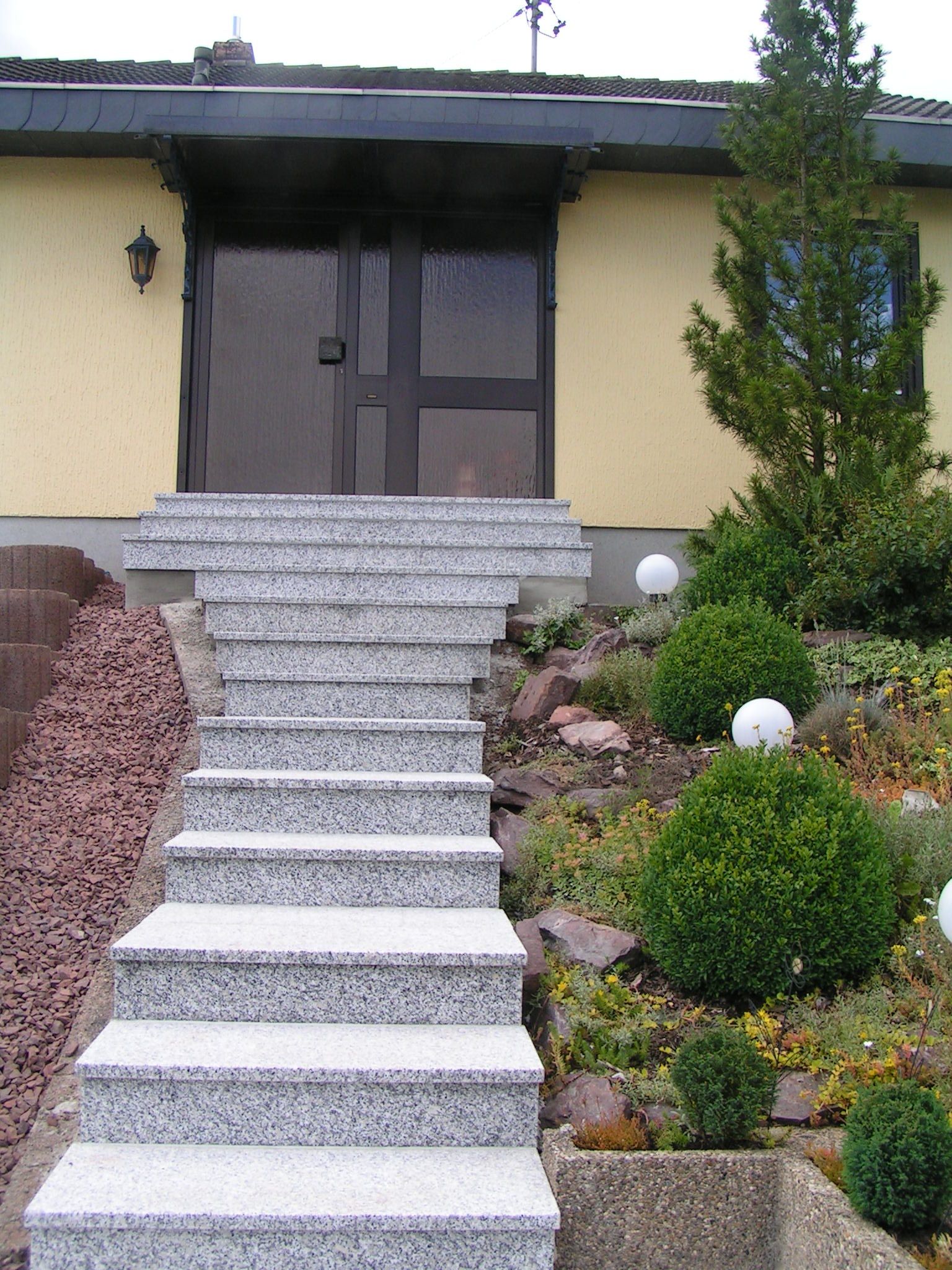 Neue Granittreppe mit Abdeckplatten und Geländer sowie Verputzarbeiten