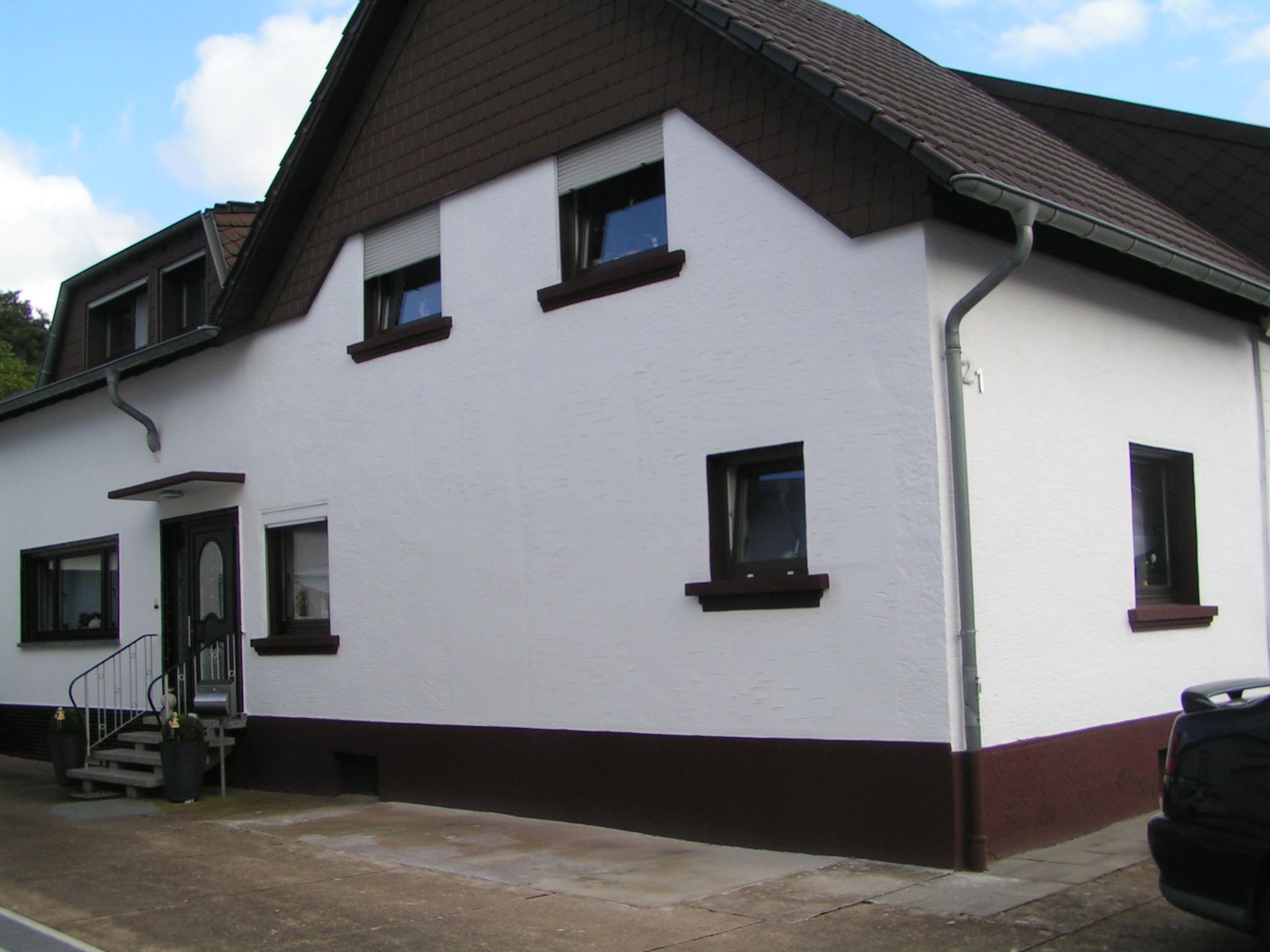 Vollwärmeschutz mit Fassadensanierung und neuen Fensterbänken im Nordsaarland (vorher)