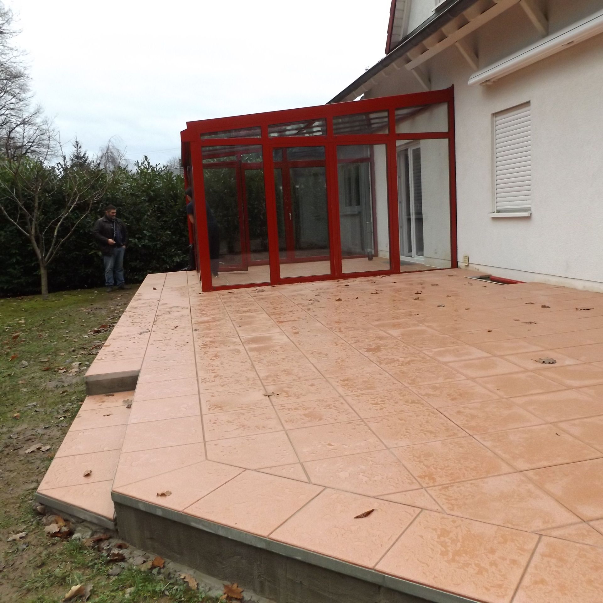 Neuaufbau einer Terrasse mit Terrassenbelag und Wintergarten (nachher)