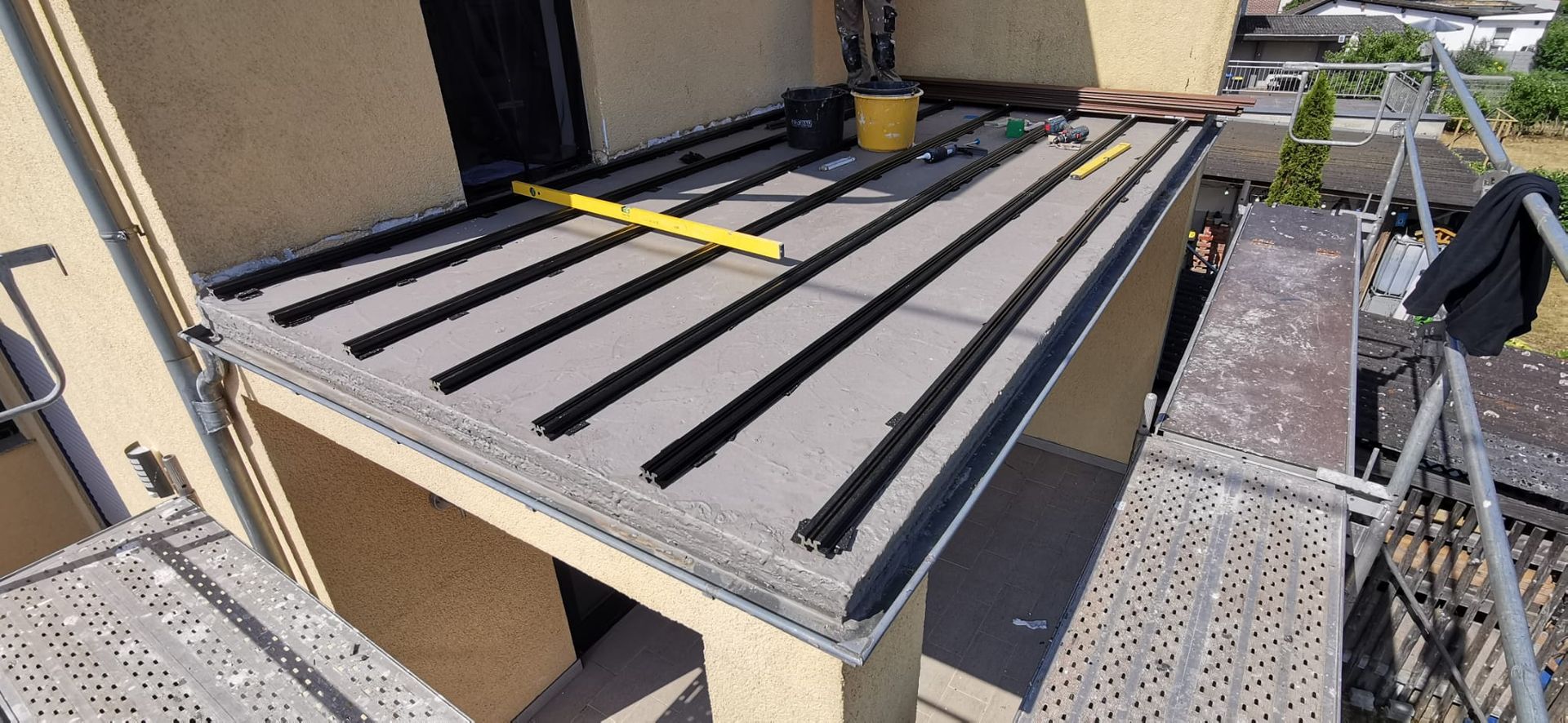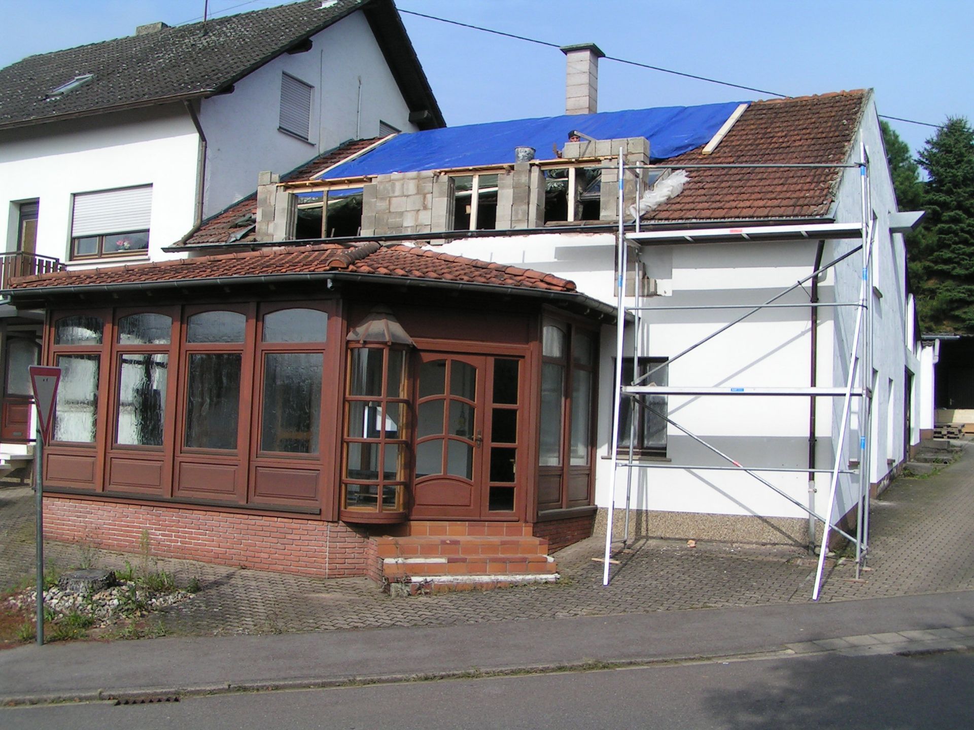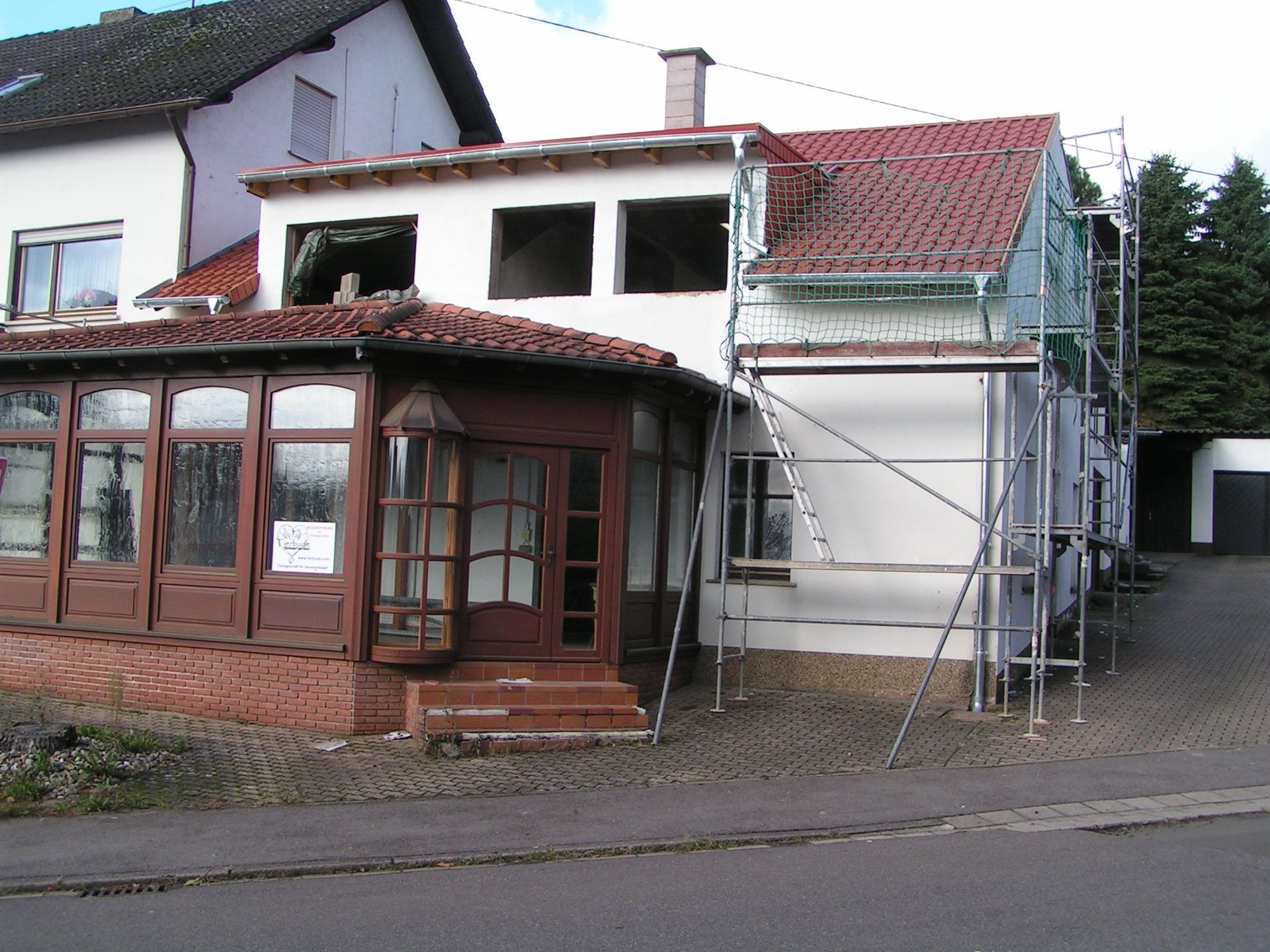 Komplettsanierung des Daches mit Fassade, Maurerarbeiten und Verputz (während der Arbeit)