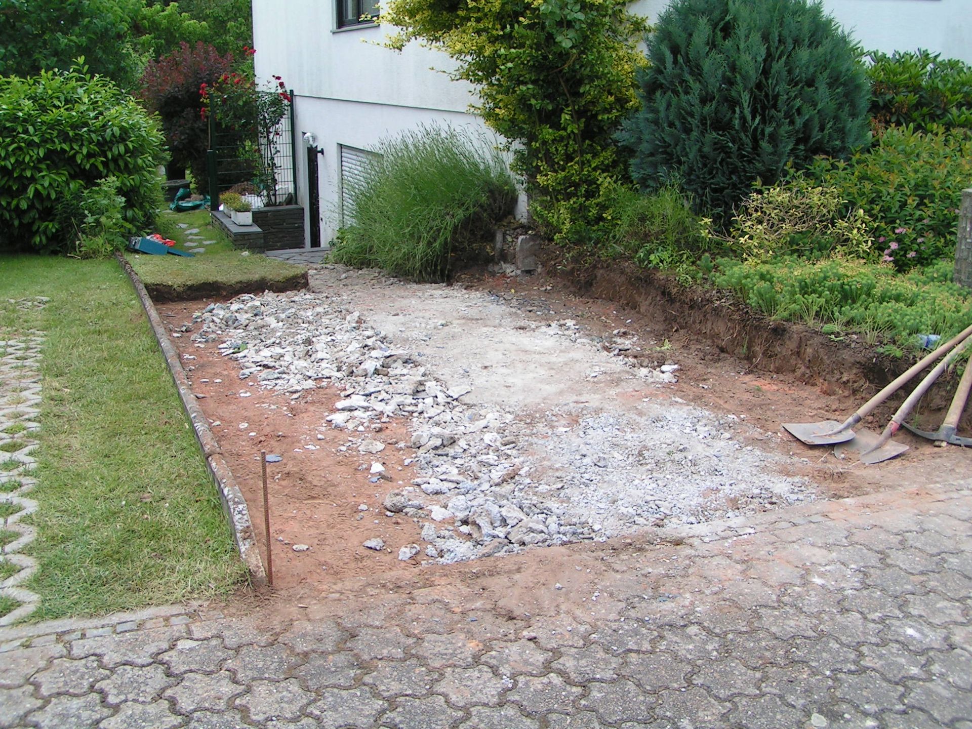 Neuaufbau einer Terrasse mit Terrassenbelag und Wintergarten (vorher)